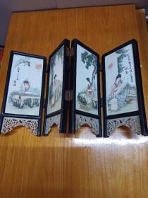 瓷板画 屏风 四美图 高20cm