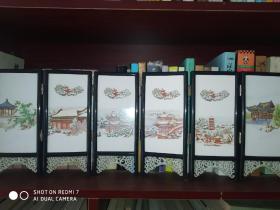 九十年代书房瓷板画屏风小摆件 各地风景名胜高约20 六片全