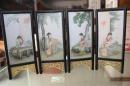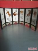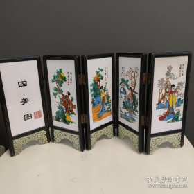 95_旧藏:檀木镶嵌瓷板屏风摆件 纯手工制作 器型别致 整体线条流畅 非常大气 案头 文房 家居 摆放 赏玩即可。 尺寸:高36.5厘米 宽39厘米