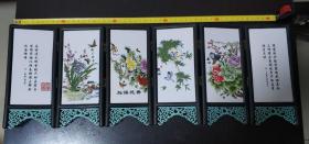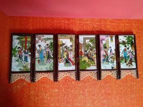 284_旧藏:檀木镶嵌瓷板屏风摆件 纯手工制作 器型别致 整体线条流畅 非常大气 案头 文房 家居 摆放 赏玩即可。 尺寸:高36.5厘米 宽39厘米