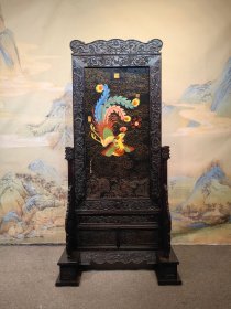 郎世宁作品红木雕龙纹饰镶瓷板画珐琅掐丝凤纹屏风