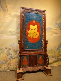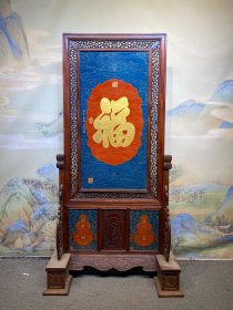 唐英款红木镶瓷板画珐琅掐丝福字隔断屏风