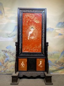丁观鹏作品红木镶瓷板画珐琅掐丝唐卡隔断屏风