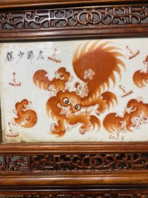 旧藏花梨木镶嵌瓷板画屏风,尺寸:长41厘米,高37.5厘米