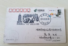 《京汉铁路工人“二七”大罢工九十周年》连体戳实寄片