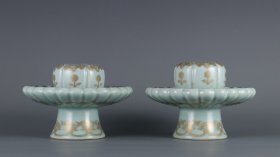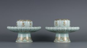 清乾隆年制豆青釉描金花卉纹夜明珠瓷托