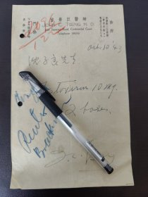 民国 上海 曾景臣医师 给沈子良开的 处方签。 曾景臣,1902年生于五经富庵背村。幼聪颖,长从医,闻祖上言,医乃仁术,进修于世界名校,为上海著名神经学科专家,因有功于家国乡里,而被收录入《潮汕名人录》。