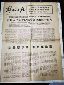《解放日报》1977年1月9日 第一版——第四版 /除害慰忠魂,遗愿化雄图:海良/《中国人民伟大的无产阶级革命家、杰出的共产主义战士周恩来同志逝世一周年》纪念邮票发行/无线怀念周总理,忠心爱戴周总理。