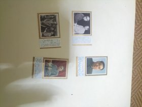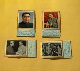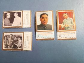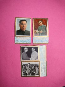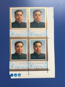 J13邮票四方联一组。4-1。周总理逝世一周年纪念。新票上上品。带直角边纸。金粉亮。带色标。带梅花标。背有轻微黄。很漂亮。实图发货。