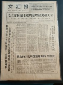 文汇报1967年4月20日毛主席林副主席周总理接见越大使上海异型钢管厂革命派,我京市革命委员会今宣告成立纪念邮票战无不胜的毛泽东思想万岁今起发行上海警备区某部五号连