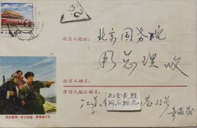 1969年北京中国人民大学,毛主席语录,6面红旗毛主席万寿无疆,红灯记剧照实寄封,马桂枝(芝)给同学知青信件3页,讲述人大和清华动态,也有周总理讲话指示,值得收藏,邮票被剪走了