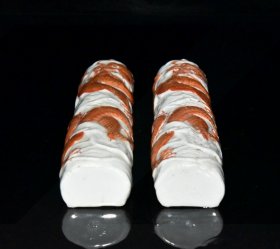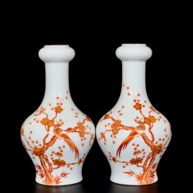 矾红描金龙纹瓶一对 高18.5厘米宽8厘米