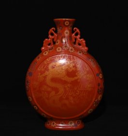 清乾隆年制矾红描金龙纹扁瓶