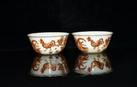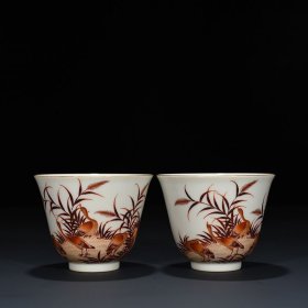 明代成化矾红描金鸡缸杯一对