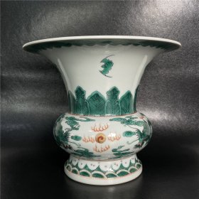一口价古董大清乾隆年制双龙戏珠绿釉彩矾红描金敞口花瓶渣斗摆件买家自鉴特价包邮