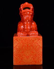 清雍正年矾红描金狮纹印章2