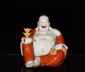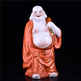 民国大师曾龙昇造矾红描金纹布袋站佛