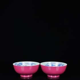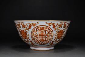 清雍正矾红釉描金碗 古玩古董古瓷器