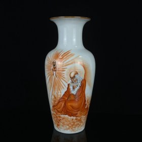 珠山八友王步矾红佛光普照达摩纹饰描金瓶,高27.5cm,肚径12cm