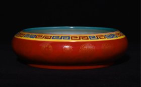 清雍正年制矾红描金珐琅彩五龙纹洗