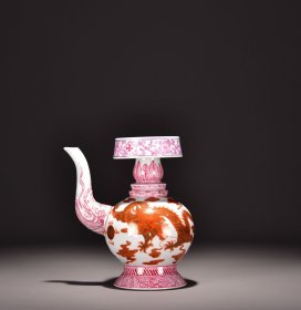 旧藏清乾隆矾红描金龙纹贲巴壶! 尺寸高19宽17 价:800