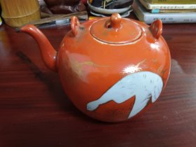 余元昌造矾红描金松鹤延年茶壶