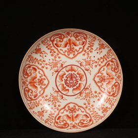 清乾隆矾红描金云龙纹洪福齐天盘 高4.7厘米 直径22.2厘米