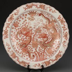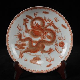康熙矾红描金穿花龙纹盘