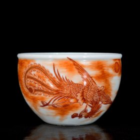 清乾隆矾红描金凤纹缸杯5.8/9 9880001678