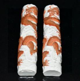 清代矾红描金雕刻龙纹镇尺一对