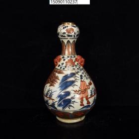 古董古玩老瓷器收藏 元青花描金矾红人物蒜头瓶20*36CM