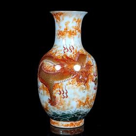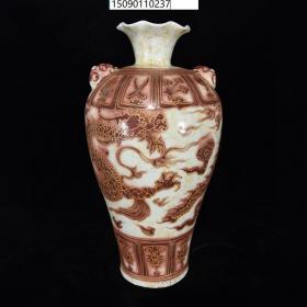 古董古玩老瓷器收藏 元白浒孤窑矾红描金龙纹瓶17*39 CM