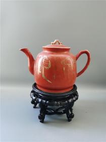 民国矾红描金印章纹赠款壶 包老 盘碗罐缸瓶壶炉盒笔筒烟缸笔筒