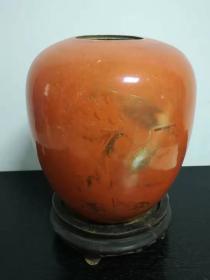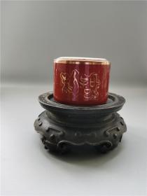 雍正矾红描金花卉八卦笔舔。 规格2.1*8.5