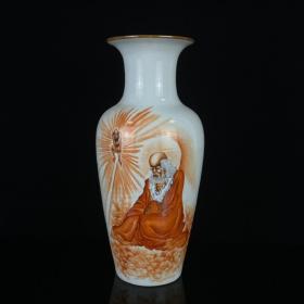民矾红佛光普照达摩描金瓶