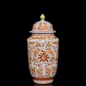 清乾隆矾红描金花卉纹参罐 古玩古董古瓷器老货收藏
