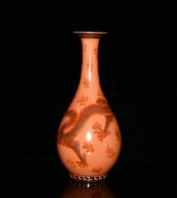 大清乾隆矾红描金龙纹玉壶春瓶