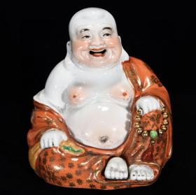 民国朱茂记作矾红描金佛