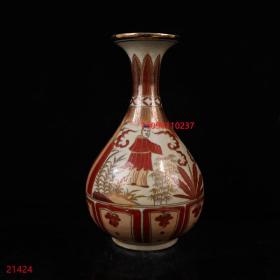 古董古玩老瓷器收藏 元代矾红描金人物纹玉壶春瓶20*34CM