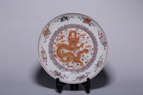 清代,“大清光绪年制”粉彩矾红描金龙纹盘