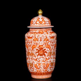 清乾隆矾红描金花卉纹参罐;25.5/12 798009658