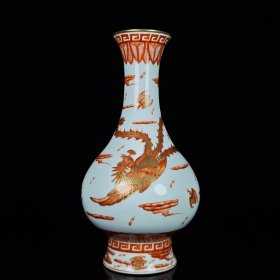 矾红描金云凤纹瓶 高25厘米宽12.5厘米