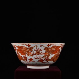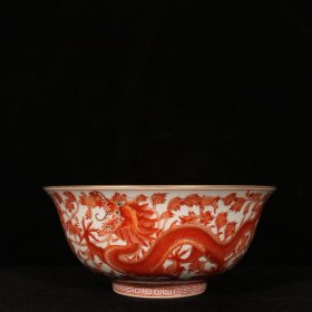 矾红描金龙凤呈祥纹大碗 尺寸 高9.5直径22厘米