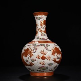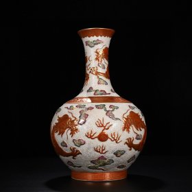 瓷器 清乾隆雕刻轧道海水矾红描金龙纹赏瓶 41*26厘米