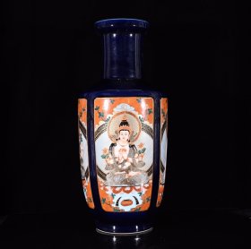 瓷器 清雍正蓝地轧道矾红描金龙纹胆瓶 38×20厘米