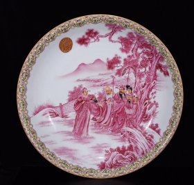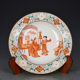 瓷器 清乾隆粉彩矾红描金人物纹盘 4*26.5厘米