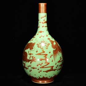 清乾隆豆青釉矾红描金龙凤纹胆瓶