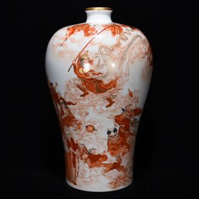 清雍正矾红描金十八罗汉斗悟空纹梅瓶