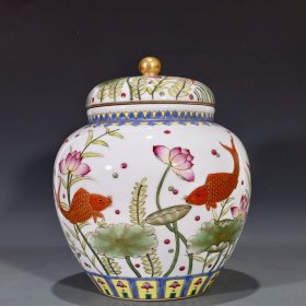 清乾隆粉彩矾红描金荷塘鱼藻纹盖罐