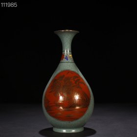 宋政和二年款汝窑天青釉玉壶春瓶后乾隆乾隆矾红描金山水